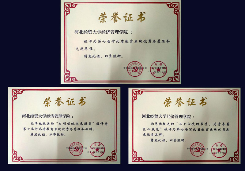 在第七届河北省教育系统志愿服务评比活动中,开云官网被评为优秀志愿服务先进单位,其中“文明创城志愿服务”“三十六次的牵手,为青春着匠心底色”活动被评为优秀志愿服务品牌;开云官网信息系、管理系协会青年志愿者被评为优秀志愿服务组织;梁博宇、姜瑞被评为优秀志愿服务先进工作者;唐莉、赵云岩被评为优秀志愿者。