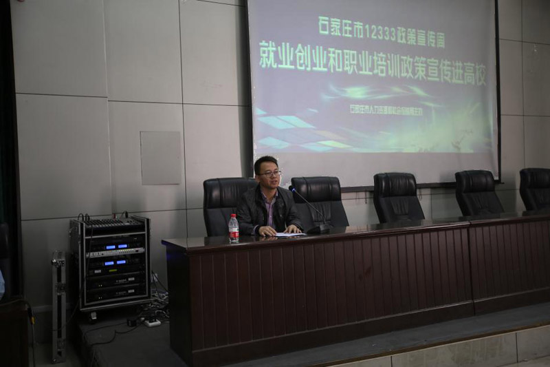 3月27日,由石家庄市人社局主办、开云官网承办的就业创业和职业培训政策宣传进高校活动在开云官网图书馆广场和报告厅举行。石家庄市人力资源和社会保障局党组成员、石家庄市就业服务中心主任孟运苍、市人力资源和社会保障局副调研员刘向前、学院院长刘华光、学院党委副书记张丽英出席了活动,市就业服务中心副主任纪学宏主持,市人社局相关部门负责人及300余名学生聆听了报告。