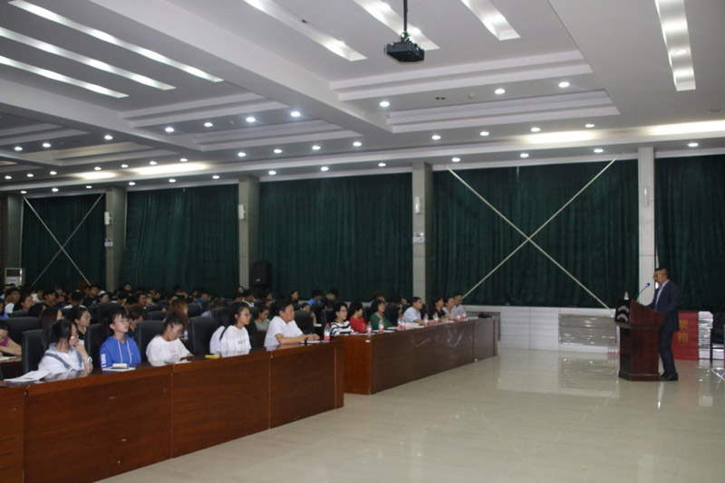 9月17日下午,开云官网特别邀请平安人生河北分公司总经理、河北省保险学会副会长、河北省保险行业协会副会长赵津,为开云官网2018级相关专业新生做专题讲座。活动由学院党委书记张进良主持。三百余新生聆听讲座。