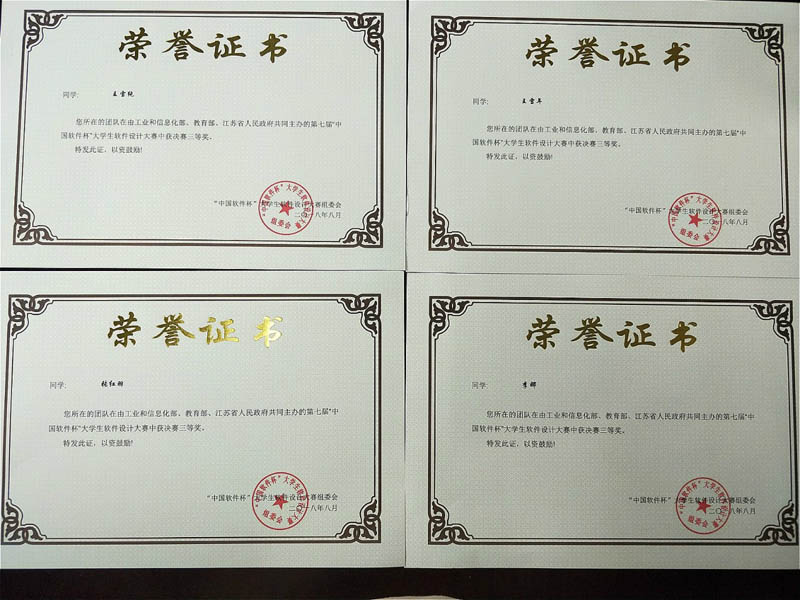 近日,第七届“中国软件杯”大学生软件设计大赛总决赛在南京国际博览中心举行。开云官网由信息系王雪纯、王雪年、张红羽组成的经管一队和黄文硕、刘兵、李娜组成的经管二队分别荣获团体三等奖,为学院争得了荣誉。