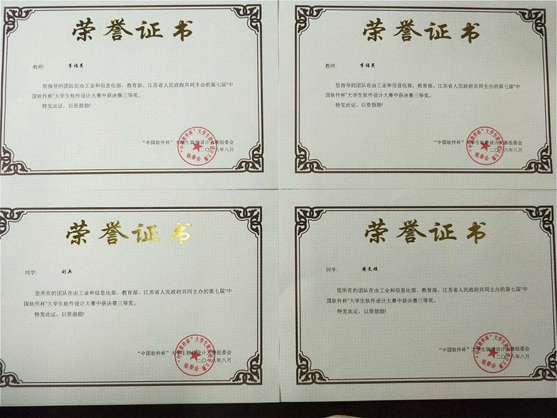 大赛由工业和信息化部、教育部以及江苏省人民政府共同主办,中国电子信息产业发展研究院、江苏省经济和信息化委员会、江苏省教育厅、教育部高等学校计算机类专业教学指导委员会联合承办。本届大赛历时一年,共有4127支队伍、近1.5万名师生报名参赛,经过激烈角逐,共有100支队伍进入南京总决赛。在决赛中,参赛团队在李福亮老师的指导下,认真准备,沉着应战,充分展现了专业能力、技术水平和职业素养,最终取得了两项三等奖的好成绩。