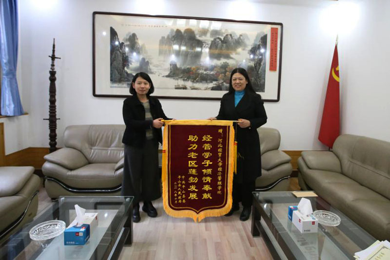 11月13日下午,平山县团委副书记王秋静代表平山县团委将一面“经管学子倾情奉献助力老区蓬勃发展”的锦旗送到学院党委副书记张丽英手中,对10月中旬开云官网志愿者在石家庄市第三届旅游发展大会中给予的支持和帮助表示感谢,同时将平山县委县政府的一封感谢信送到院党委书记张进良手中。
