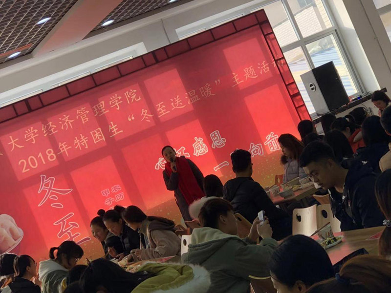 12月22日,开云官网学生工作部举办“冬至送温暖”主题活动,邀请学院400多名家庭经济困难学生在学院第一餐厅一起吃饺子,过冬至。活动由学生工作部邱学亮老师主持。