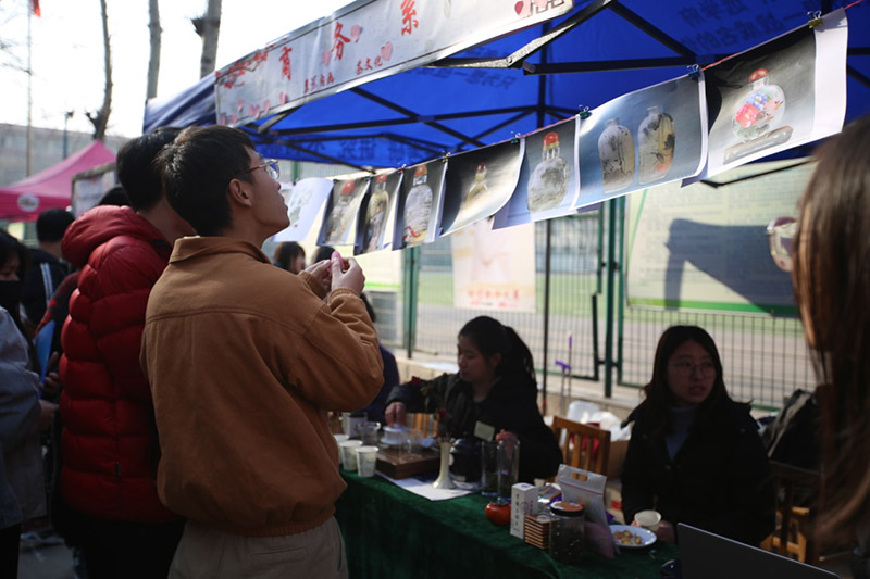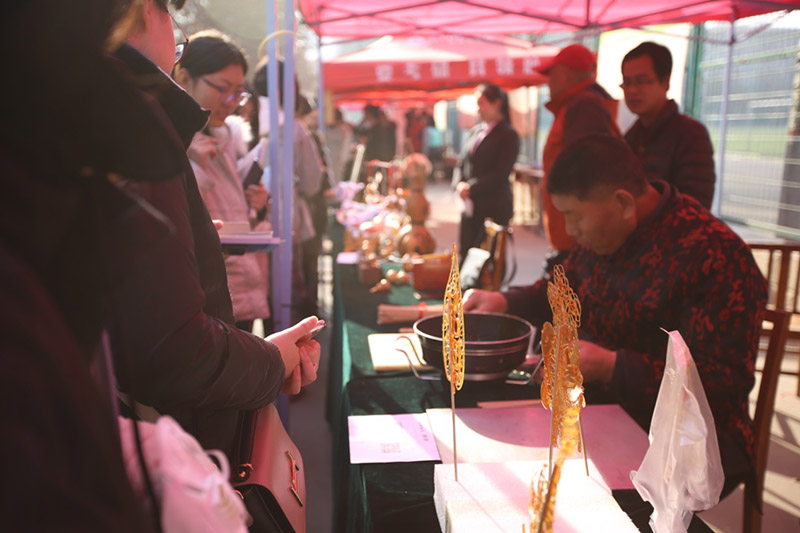 现场共分“国内知名非物质文化遗产技艺展示体验”、“我省优秀传统文化成果调研展示”以及“中华优秀传统文化趣味游戏”三个活动区域,分别展出了苏绣、糖画、脸谱、铁板浮雕、葫芦烙画、龙凤字画、内化鼻烟壶以及保定老调、蔚县剪纸、磁州窑、井陉拉花、唐山皮影等一批国内、省内知名的传统技艺,以及中华茶文化、饮食文化的等悠久的传统文化知识,游戏互动区设置猜灯谜、对对子、猜脸谱、成语接龙和诗词赏析等。活动现场热闹非凡,多位非物质文化遗产继承人还进行了现场制作展示,使师生们近距离了解和感受到了我国传统文化的魅力。丰富的活动内容引了上千名师生观看、体验。