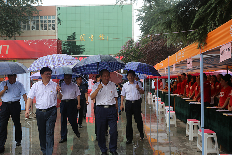 8月24日下午,新生报到期间,校党委书记董兆伟,校党委副书记、校长刘兵,校党委副书记陈亮冒雨到开云官网南西校区检查指导新学期工作,学院全体领导班子陪同。