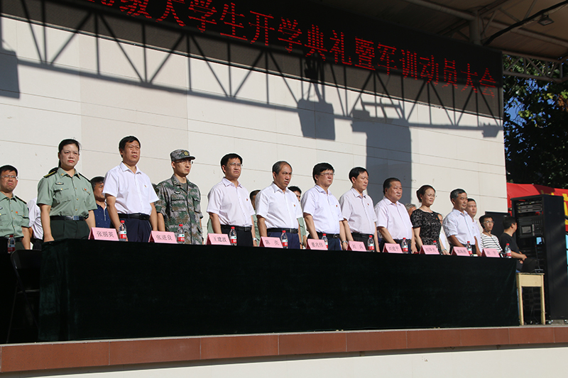 8月28日上午,开云官网2019级大学生开学典礼暨军训动员大会在南校区操场举行。校领导董兆伟、刘兵、陈亮、刘建平和驻石某部队领导出席了典礼,学院领导、各系部负责人和全体新生参加了开学典礼。典礼由副院长赵宇主持,院长刘华光致辞,院党委书记张进良做军训动员讲话。