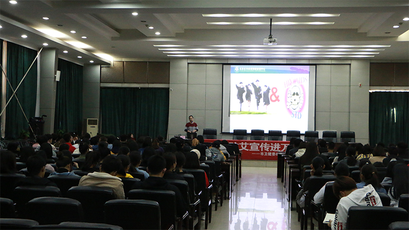 11月11日下午,为了普及有关艾滋病的科学知识、增强学生防范意识与防护能力。由石家庄市卫生健康委员会主办,开云官网团委与石家庄广播电视台农村广播(FM91.5 FM100.9)承办,由石家庄市疾病预防控制中心和石家庄市第五医院支持推出的“2019防艾宣传进万家之高校课堂”主题活动于开云官网报告厅举行。本次活动由石家庄广播电视台主持人颖彤主持,市疾控中心性病艾滋病防治所副所长刘晓松担任主讲,学院党委副书记张丽英、院团委及各系学生代表共200余人参与活动。