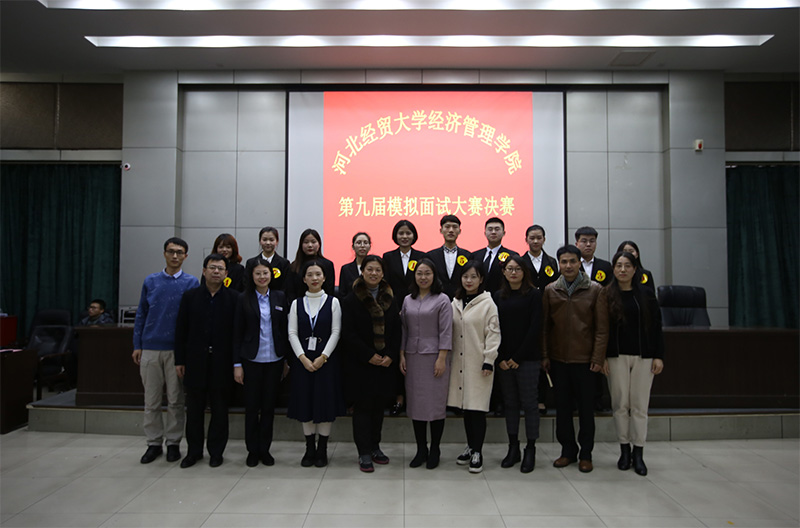 为了还原招聘现场场景,让参赛者切身体验招聘流程,学院特邀北京导氮教育科技责任有限公司教考部经理袁来、石家庄苏宁易购商贸有限公司人力资源部经理姜林、中国民生银行股份有限公司石家庄分行人力资源部经理高璐、河北源达信息技术股份有限公司招聘主管李芸贤、石家庄新东方学校招聘主管孟雨晴担任本次大赛的评委,并对选手进行面试提问。
