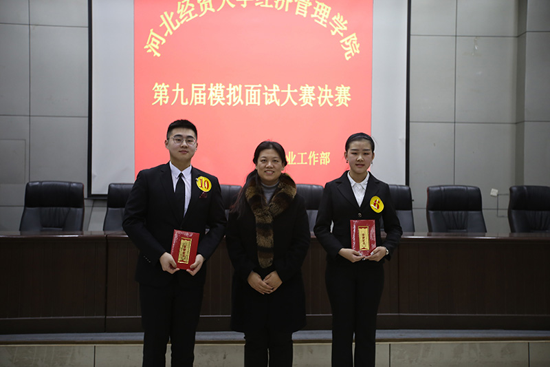 大赛历时一个多月,经过初赛复赛,最终从86名参赛者中选出10名进入决赛。赛事分自我介绍、无领导小组讨论、压力面试和评委提问4个环节,考察各位选手的基本素质、反应能力、表达能力和组织能力。经过两个多小时的激烈角逐,最终,刘宇涵(文法系)、李珊(会计系)荣获一等奖,苗艺萱(商务系)等3人荣获二等奖,李德金(文法系)等5人荣获三等奖。比赛过程中,观摩的学生代表们认真聆听,从中汲取经验。