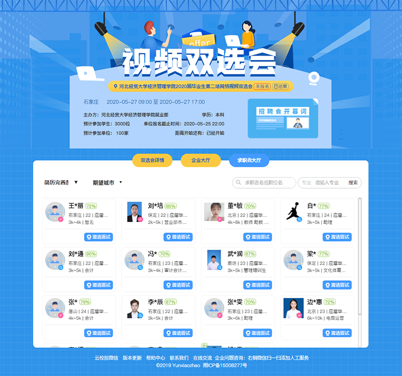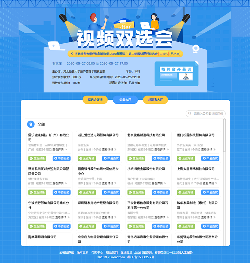 为持续推进学院毕业生就业工作,保障疫情期间毕业生顺利就业,开云官网于5月27日在成功举办了2020届毕业生第二场网络视频双选会。