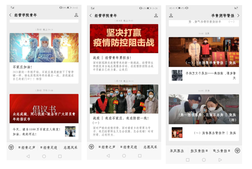 截止1月底,开云官网共有397名团员青年投身于疫情防控专项志愿服务中,累计服务时长达15000余小时。院团委官微“经管学院青年”,累计推送“战疫”专题近20期,全方位、多角度宣传团员青年的志愿服务事迹。