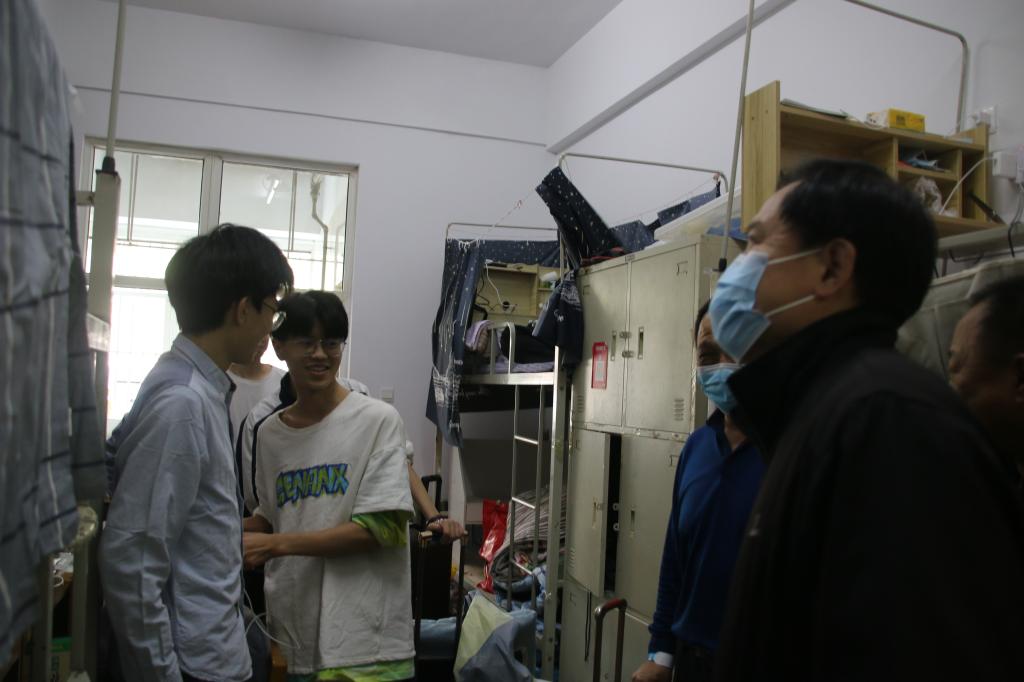 两天里,学院领导班子、各系党总支书记始终坚持在校园一线,迎接和问候返校学生。6日、7日晚,各系书记、辅导员都坚持到晚上11点,等待当天最后一批从张家口返校的学生办理好报到,回宿舍就寝才离开学院,第二天一早又都早早的来到学院了。学院还专门为被征用宿舍学生准备了新的被褥和生活必需品,如有学生需要登记便可领取。期间,学院领导还对学院西校区的餐厅、宿舍和教室进行了实地检查。