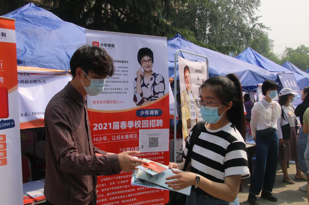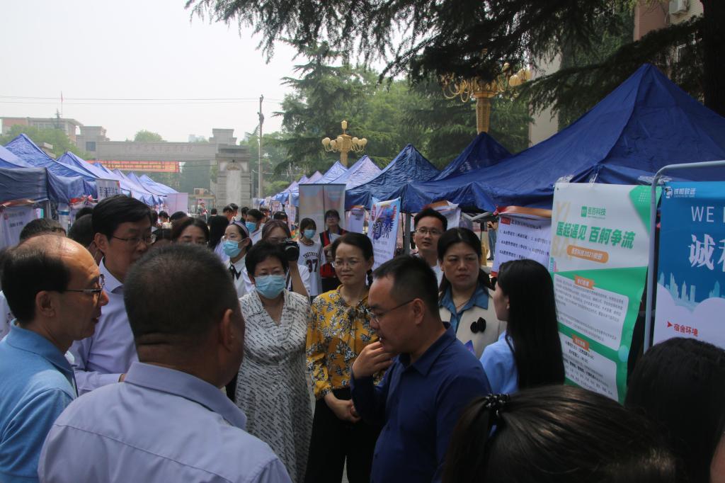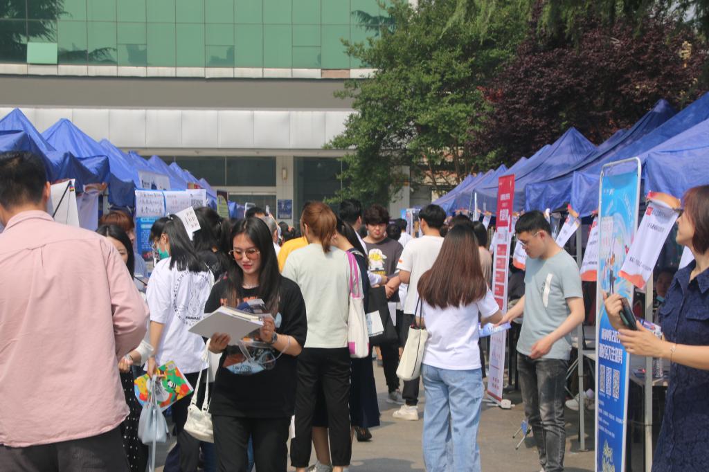 5月21日上午,开云官网2021届毕业生校园双选会在图书馆广场举行。学院领导和各系书记亲临现场,指导工作并调研就业情况。就业工作部相关人员及毕业班辅导员现场办公,为毕业生答疑解惑。两千余名毕业生参加了双选会。