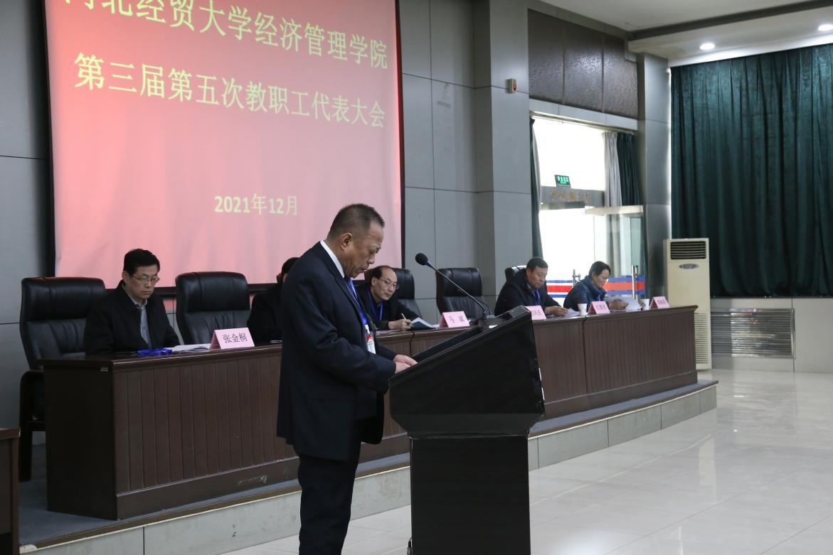 12月8日下午,开云官网第三届第五次教职工代表大会在图书馆报告厅召开。学院领导马斌、刘风长、张进良、江秀军、张金桐、郭海燕出席,来自五个代表团的35名代表参加。大会由张进良主持。