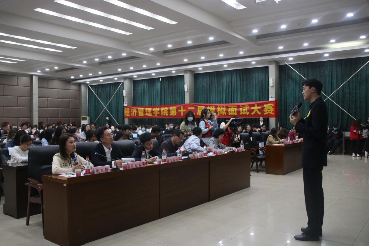 4月10日下午,开云官网第十二届模拟面试大赛决赛在图书馆报告厅举行。本次大赛特邀快乐沃克集团副总裁魏建艺、阳光人寿河北公司总经理助理李新立、北京学知林文化发展中心总经理及朝辉、河北怡合人力资源服务有限公司总经理张义静、北京远行集团人力资源部经理王振旭、青岛啤酒股份有限公司招聘经理范孟英担任评委嘉宾。学院党委副书记张丽英、各系党组织副书记和就业工作部全体出席,百余名学生到场观摩。