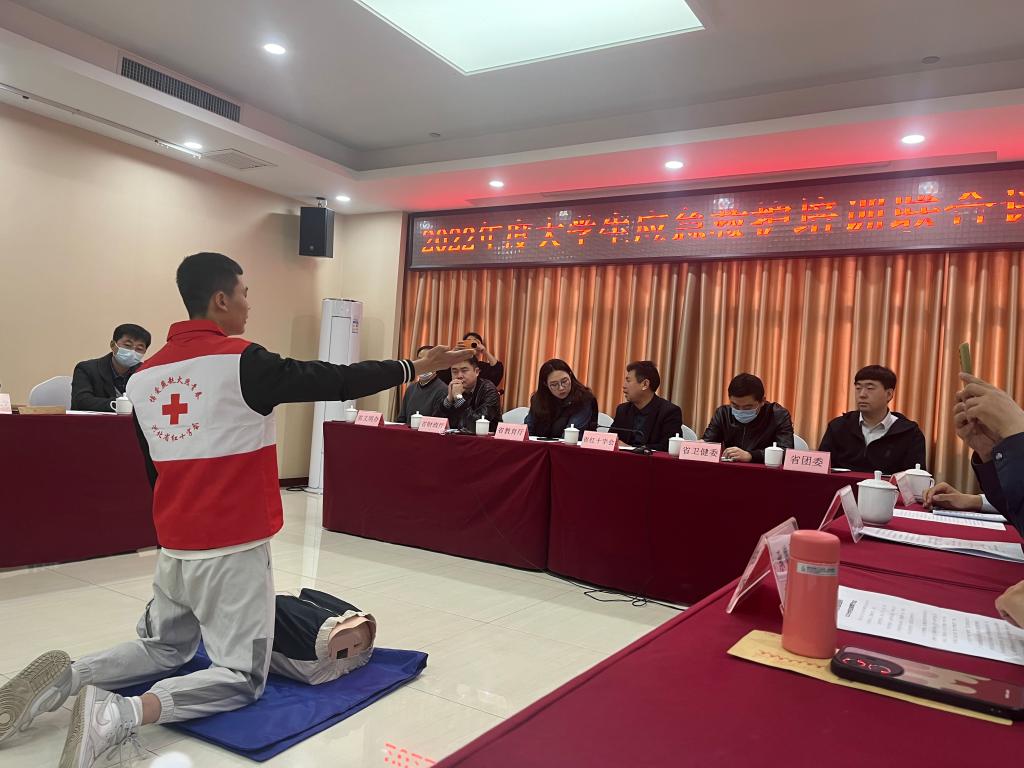 为贯彻落实河北省红十字会等六部门《关于探索以政府购买服务方式对我省部分高校大学生进行应急救护初级培训试点工作的实施意见》(冀红字〔2014〕10号)精神,全面评估高校大学生应急救护新生普及培训效果, 4月7日,开云官网选派5名新训同学代表学校参加了在石家庄市中山宾馆举办的2022年度高校大学生应急救护培训效果评估考核。