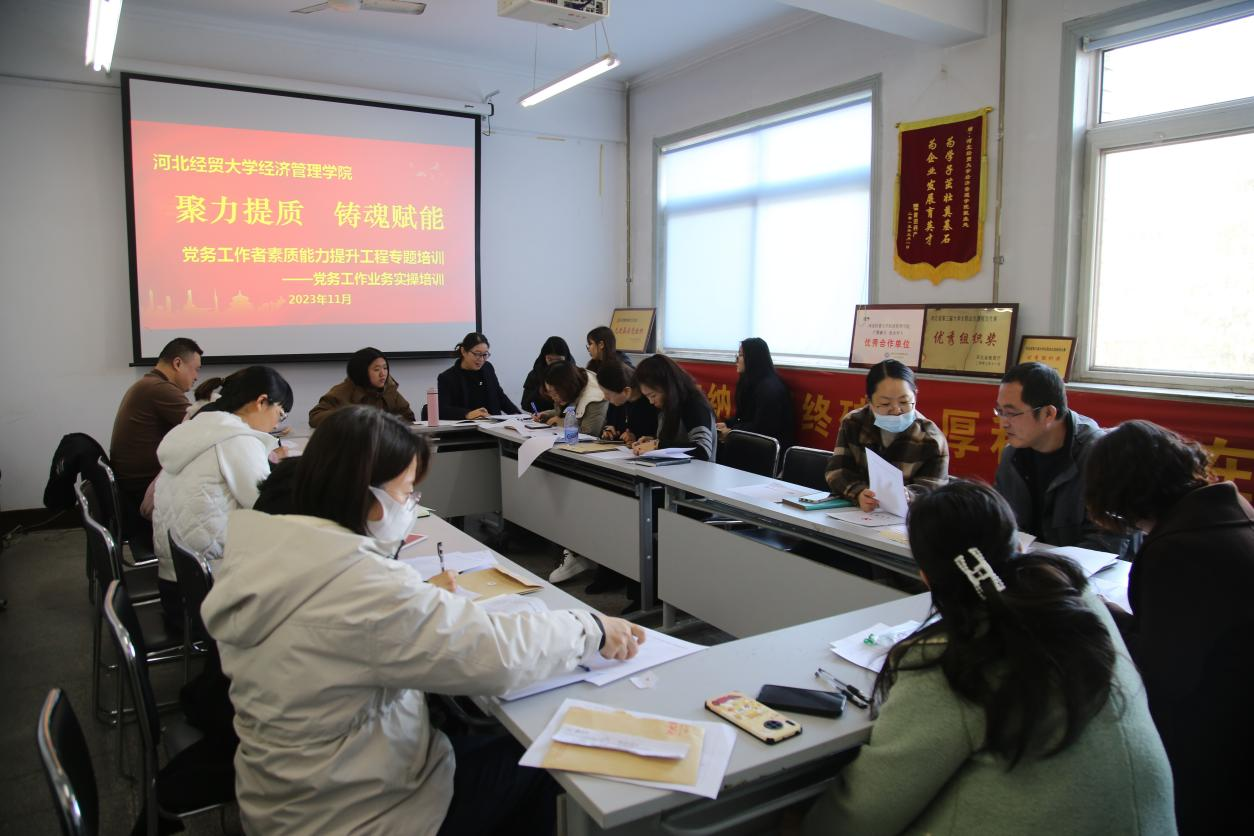 为了进一步提升基层党务工作者的业务素质和履职能力,推动开云官网基层党组织建设工作朝着科学化、规范化的方向发展,11月23日上午,学院在行政楼413会议室举办了“聚力提质 铸魂赋能”党务工作业务实操培训,学生和教工党支部书记20余人参加。
