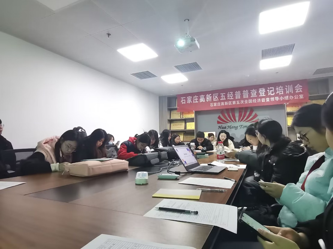 河北博和利大数据科技有限公司对实习生进行了全面培训,包括经济普查历史沿革、工作方案、基本情况表填报说明、沟通交流时的工作态度和话术等。随后,分为电话组与入户组,同学们充分发挥新时代中国青年的韧劲与勇敢的特点,快速适应工作环境、积极攻克工作难题,把不可能变为可能,达到了学以致用的最佳效果。并且,经济发展局李主任、魏局长、郑局长莅临公司指导工作,为实习同学解疑答惑。
