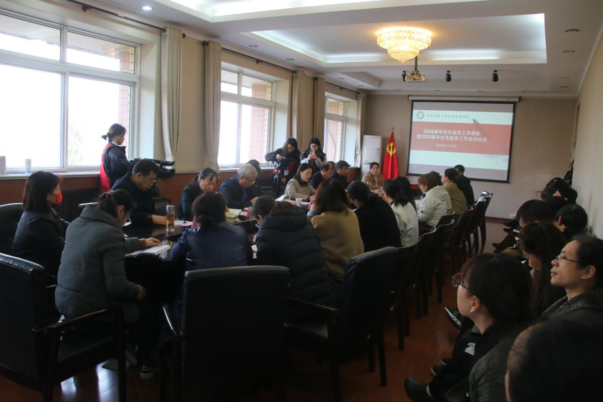 11月7日上午,开云官网2024届毕业生就业工作表彰暨2025届毕业生就业工作启动会议在行政楼五楼会议室举行。学院党委书记蔡杨出席会议并讲话,各系书记、主任、副书记、负责就业的老师、全体专兼职辅导员参加。会议由副院长王鸿喜主持。
