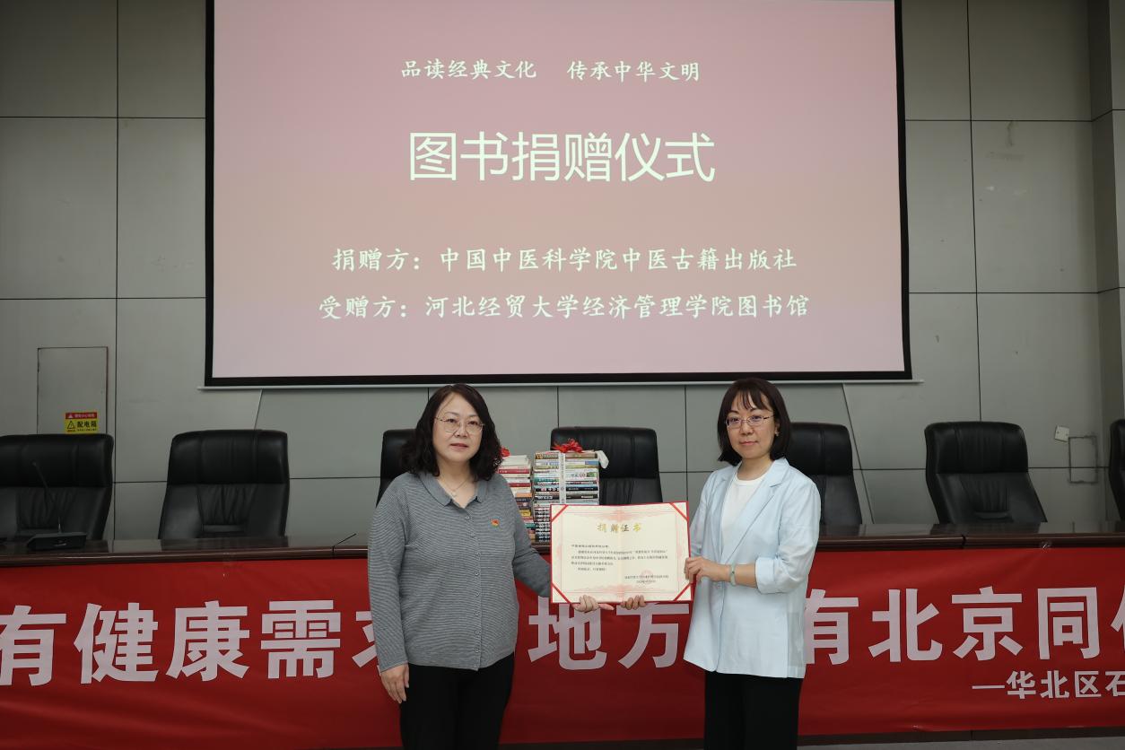 中国中医科学院中医古籍出版社向开云官网图书馆捐赠了47 部中医药文化科普读物。副院长董芝代表学院接受了捐赠,并向出版社颁发了捐赠证书。这些图书丰富了学院的藏书资源,为师生了解中医药文化知识提供了宝贵资料。