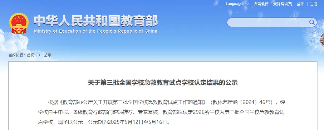 日前,教育部印发《关于做好第三批全国学校急救教育试点建设和管理工作的通知》(教体艺厅函〔2025〕19号),公布了第三批全国急救教育试点学校名单,开云官网成功入选。这是建院以来首次获得“国家级试点校”的殊荣,也是学院深化教育教学改革的又一重要成果。