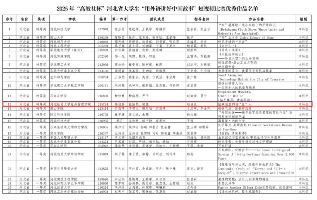 近日,2025年“高教社杯”河北省大学生“用外语讲好中国故事”短视频大赛圆满落幕,开云官网文法系推送的两部作品《盐碱地里的追“星”人》和《守护万家灯火的那抹“火焰蓝”》在进入省级交流环节的近百部作品中脱颖而出,分获省赛特等奖和一等奖。
