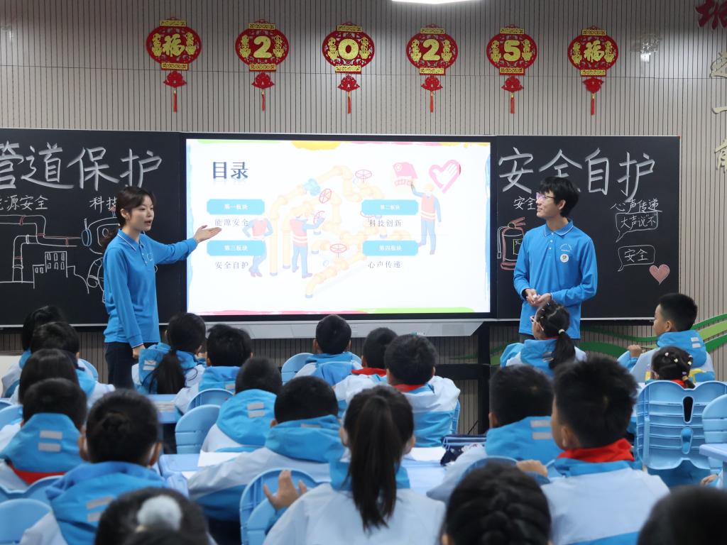 宣讲团从“能源安全是国家安全的生命线”这一战略定位出发,以高度的政治责任感和历史使命感进行课程设计。成员们通过生动的讲述和丰富的案例,向学生们阐明了油气资源如同国家的“工业血液”,而纵横交错的管道网络则是输送这些“血液”的“生命线”,对于保障国家经济发展与安全稳定具有不可替代的基础性作用。活动引导孩子们深刻认识到,确保能源通道安全畅通,是关乎国家发展全局和人民生活福祉的重大课题,维护能源安全是每一位公民义不容辞的责任。