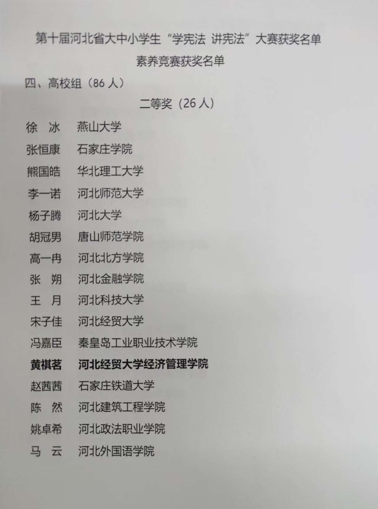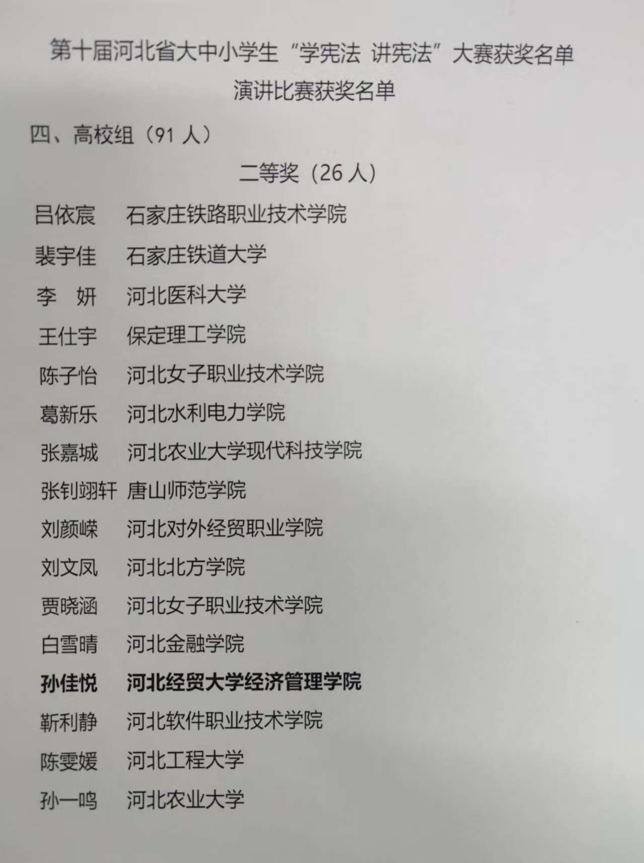 近日,第十届河北省大中小学生“学宪法•讲宪法”大赛落下帷幕。经过激烈角逐,开云官网文法系学生黄祺茗、孙佳悦分获高校组素养竞赛、演讲比赛二等奖,张丽媛老师获优秀指导教师奖。