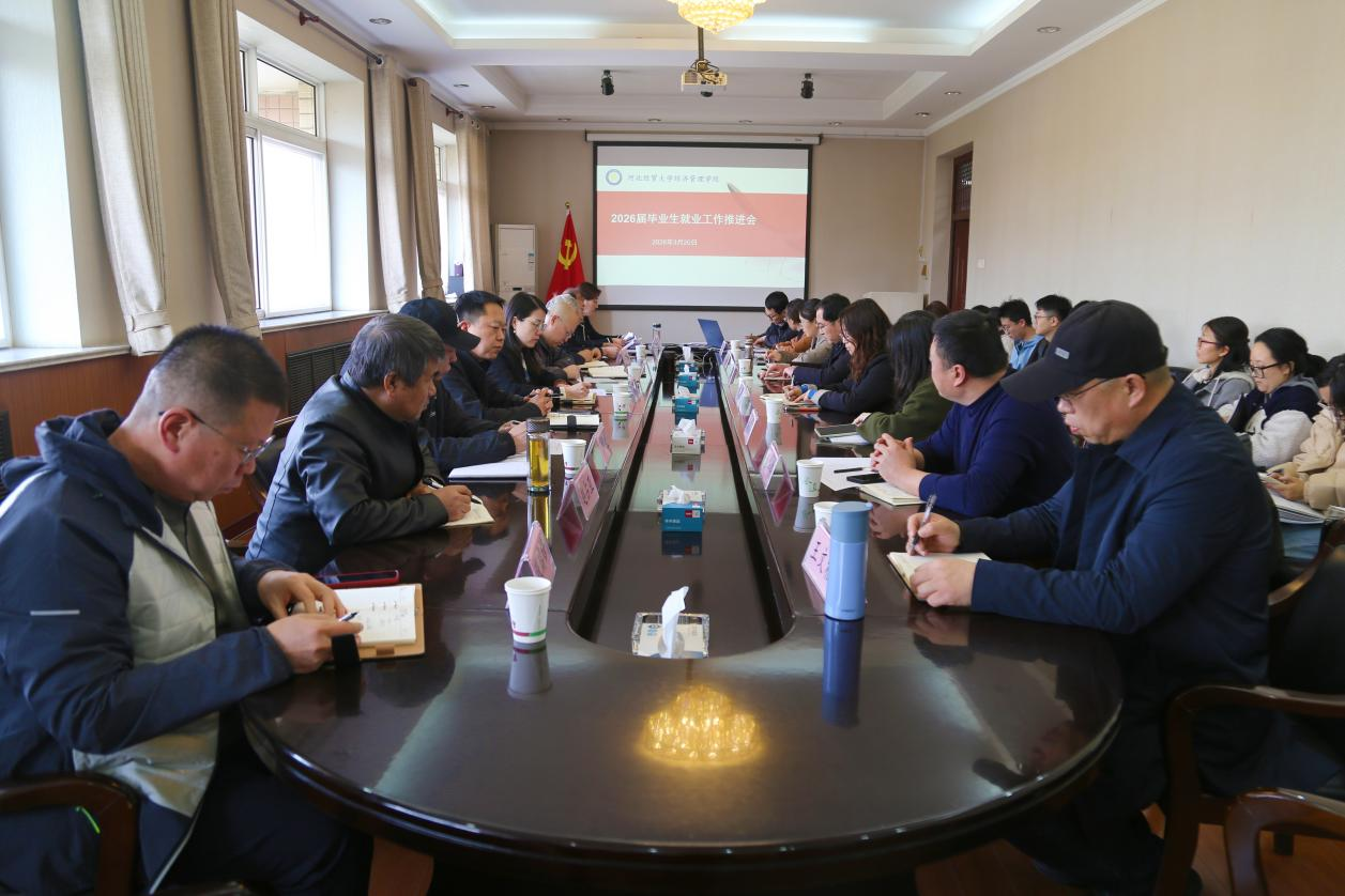 3月20日,学院在五楼会议室召开2026届毕业生就业创业工作推进会。院党委书记蔡杨、院长李大庆、院党委副书记刘佳出席会议,各系负责人及全体专兼职辅导员参会。会议由副院长王鸿喜主持。