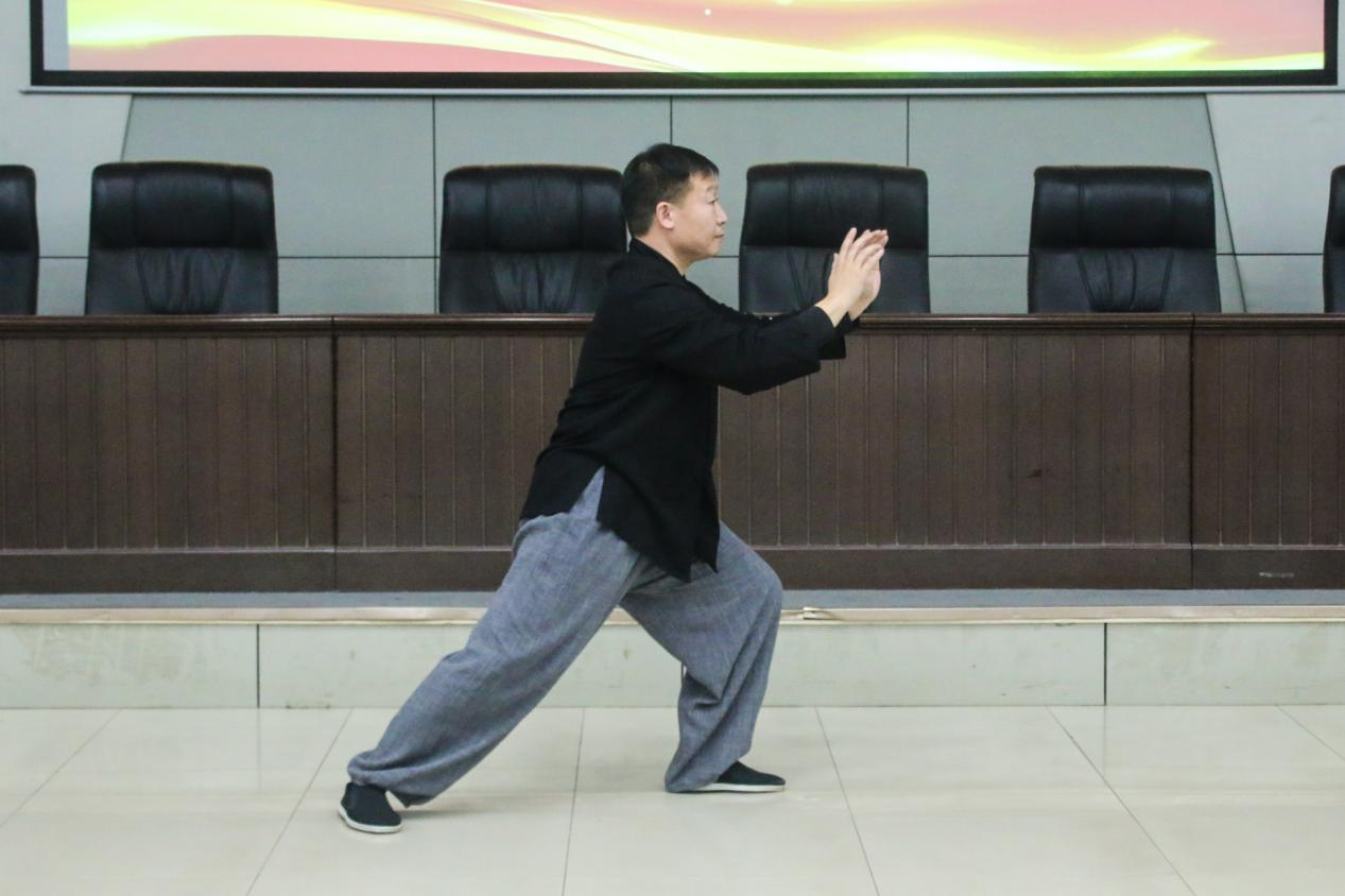 杨建超作为启幕嘉宾登台,现场带来杨氏太极拳健身知识与技艺展演。杨老师简单梳理了杨氏太极拳传承发展脉络,深入浅出地阐释太极拳“阴阳平衡、刚柔相济”的核心要义,详细讲解太极拳的练习要点,结合自身三十余年习练经验,解读太极拳在强健骨骼、提升心肺功能、调节情绪、锻炼神经系统等方面的健康价值。最后,杨建超现场展演杨氏太极拳26式,动作行云流水、刚柔并济,尽显传统武术的独特魅力与文化底蕴。