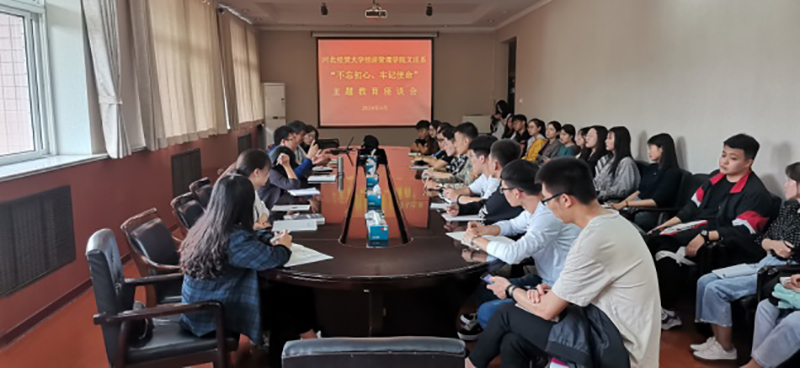 9月19日下午,文法系在开云官网行政楼5楼会议室召开“不忘初心、牢记使命”主题教育座谈会,系党总支书记白建锋、主任赵占亚、党务秘书徐丹、教务秘书李珊出席,各班学生干部30余人参加。