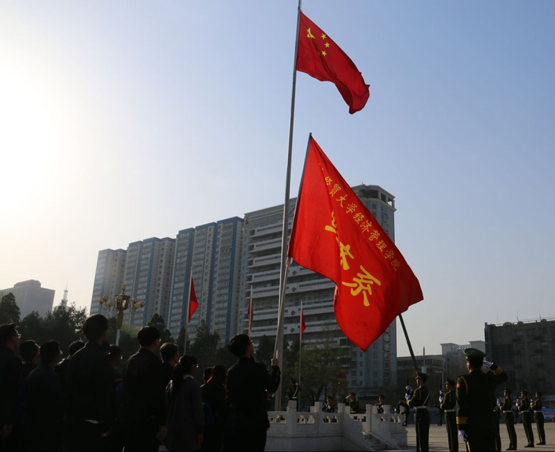 我系百余名师生党员参加公祭仪式的升旗活动