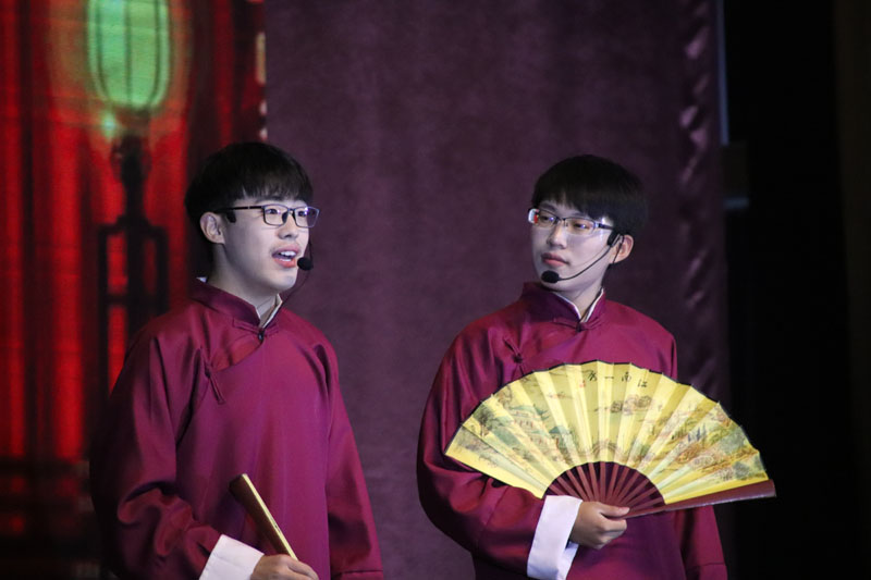 本次晚会以“青春无际,未来可期”为主题。活力四射的开场舞拉开了晚会序幕,话剧《现实与梦想的差距》和小品《百善孝为先》的精彩表演引爆了全场,掌声不绝;相声《我的大学生活》妙语连珠,令人拍手叫好;管理系老师们献上《同一首歌》,歌声婉转动听,展现了老师们多才多艺的另一面;系学生第一党支部表演的诗朗诵《中华颂》,用慷锵有力的语言里蕴含着党员同志坚定的信念,将晚会氛围推向高潮。