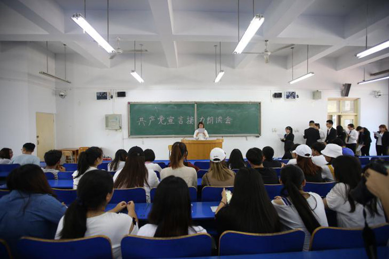 活动在二教118举行,11位学生会部长身着正装,胸前别着团徽,依次走上讲台,声情并茂地为大家朗诵了《共产党宣言》全文。学习结束后,同学们联系自身经历和感受,发表感言,他们普遍认为,“这样难懂的经典,通过朗读的形式展示出来,使人受益匪浅,这将是我们难忘的一次思政课。”最后,团委副书记刘琦做总结发言,鼓励大学生从经典学起,勤阅读、勤思考。