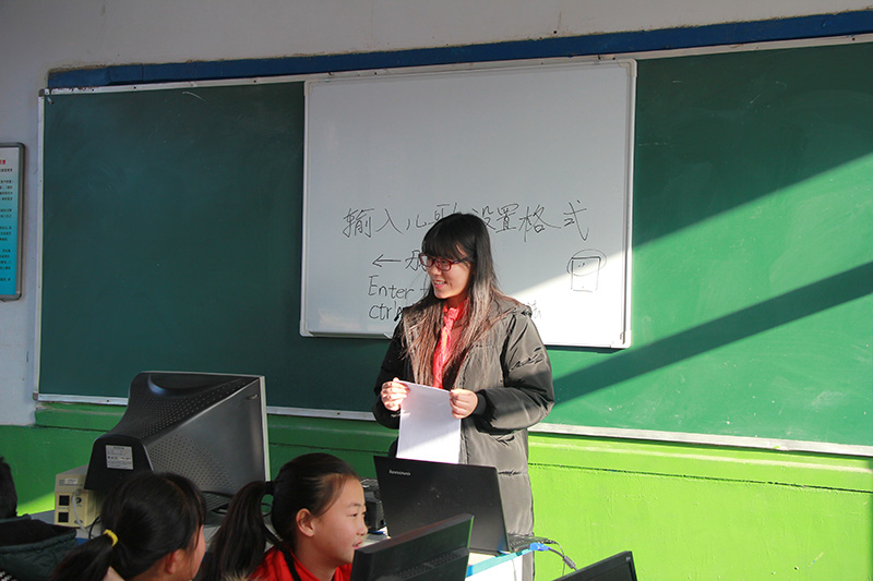 发挥高校优势,围绕智力关爱的主线,志愿者重点开展了非文化课授课。计算机、体育、美术、音乐、毛笔字等是学校教师的薄弱之处,启明星团队充分发挥“智囊团”和“后援库”作用,了解需求,认真筹备,经个人报名和教师技能培训,选取冯晨等8名志愿者作为第一批授课教师,协助当地教师完成非文化课教学,为师生带去新的思想和专业理念。