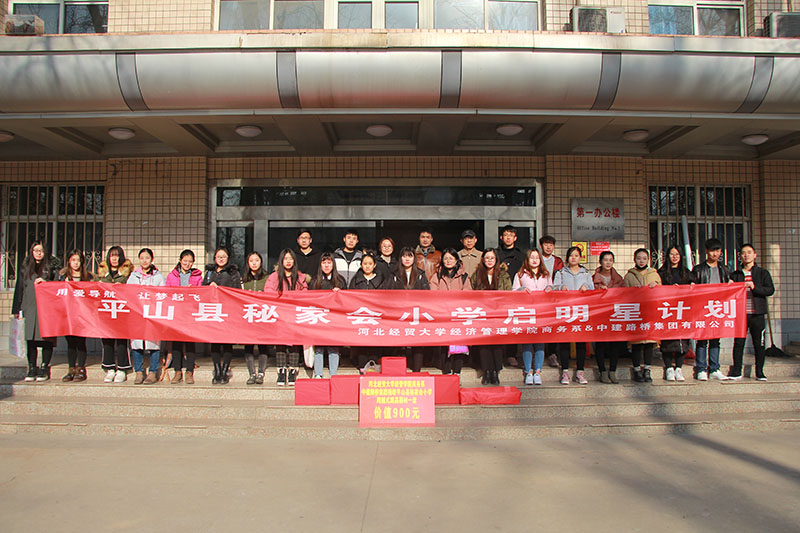 1225日下午,商务系“启明星”志愿服务团队携手中建路桥集团有限公司,第五次赴平山县秘家会小学开展精准关爱活动,并为学生们带去了图书和价值900元的体育器材。