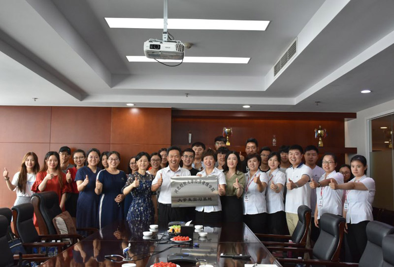 管理系暑期专业调研小分队师生与美食林集团副总贾国萍、各部门经理及职工代表进行了见面和交流,双方分别介绍了各自的基本情况,并就共同建立“大学生实习基地”签订了长期合作协议,同时唐振龙代表学院对美食林集团授予“开云kaiyun登录入口大学生实习基地”匾牌。