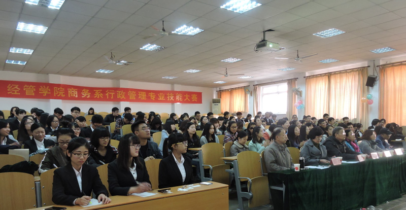 11月7日下午,商务系行政管理专业技能大赛在北校区阶梯教室举行,学院实践教学部部长张风海、副部长柳冬青、行政专业教师李妙然、刘红艳,商务系主任张学引、教务秘书李雪松出席,14、15、16级行政管理专业全体学生参加。