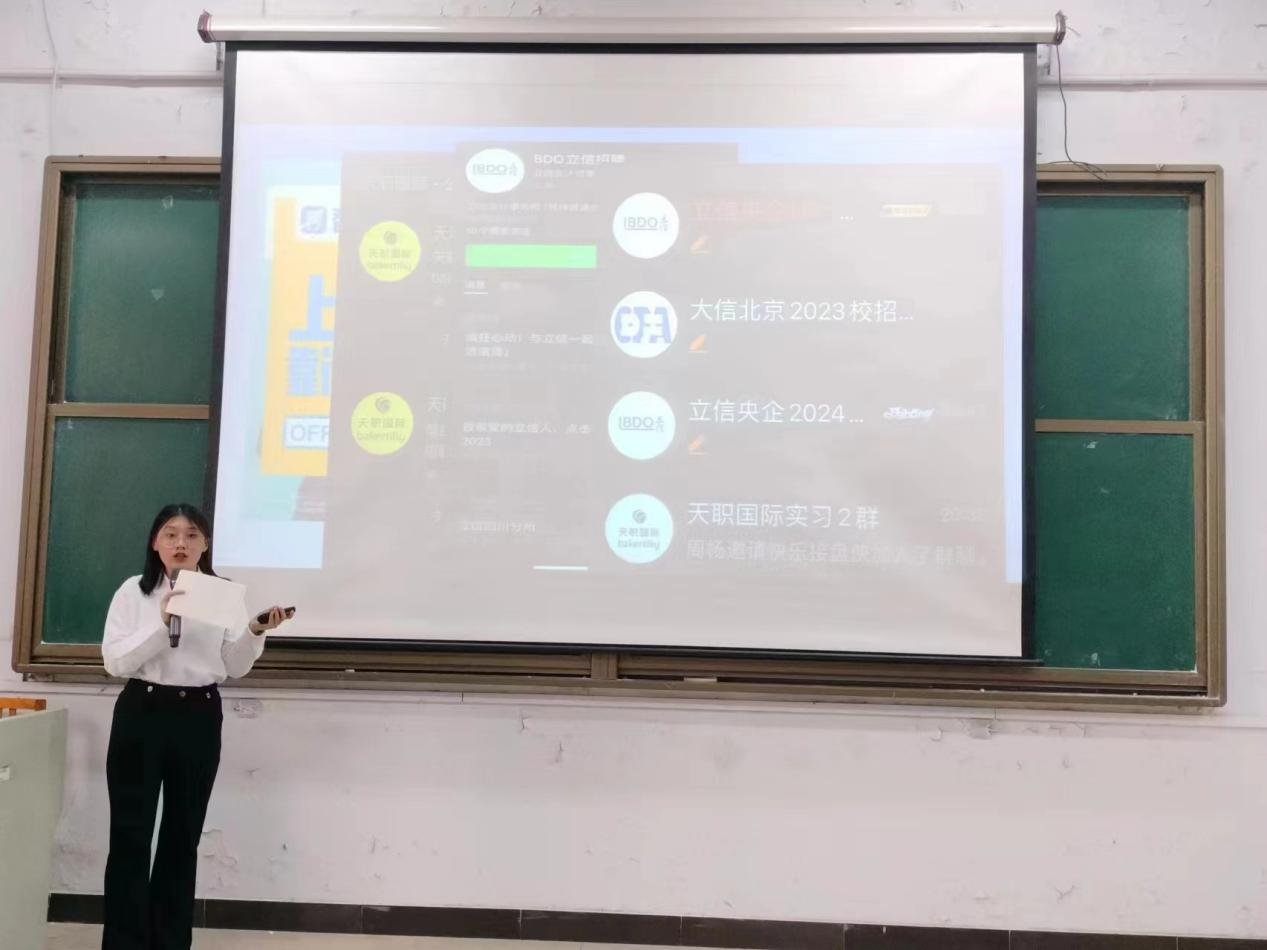 张艳敏为本次大会致辞,她对取得优异成绩的先进集体和优秀个人表示热烈的祝贺,号召同学们向先进学习,向榜样看齐,希望同学们坚守砥砺前行的奋斗精神,不断磨砺和提升自我,努力成为德才兼备的优秀专业人才。邓怀宇宣读表彰决议,对钟豪、霍雨婷等18名同学授予会计系“社会实习先进个人”荣誉称号,对2021级会计3班等5个班级授予会计系“社会实习先进组织”荣誉称号。受表彰的18名同学依次上台从审计助理、第五次经济普查员、大学生返家乡、会计、直播带货、餐饮店长等方面分享了自己在实习过程中的所见、所闻、所感、所得,并表示接下来将重新审视自我,勤学苦练,提升就业技能,以良好的心态去面对社会。