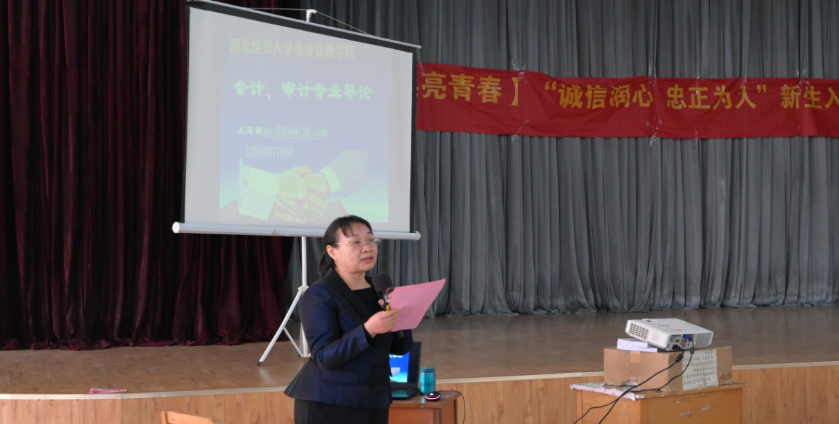 王慧霞主任立足新生需求,全面解析会计学、审计学。她介绍了专业的规划、培养框架和课程体系,让新生清晰客观地了解专业背景;解读了培养目标、毕业要求及计划实施,强调应打好基础为更好地就业创造条件;并建议新生应该走“第二课堂”补给“第一课堂”的路径,以便得到多元化锤炼。