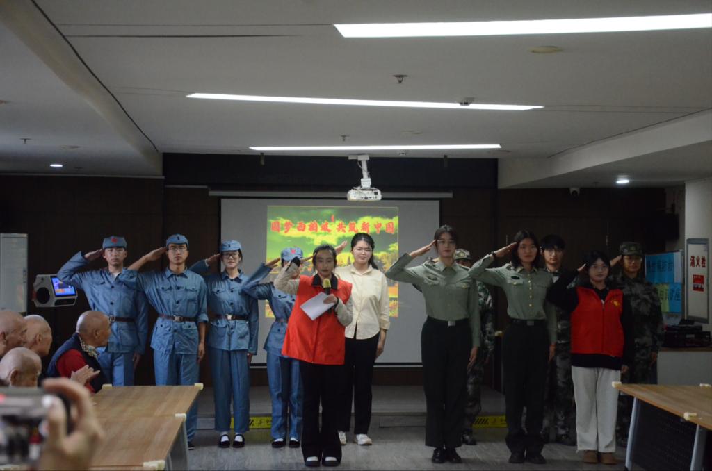 本次活动包括文艺表演、西柏坡精神情景剧展演、打扫卫生、亲情交流四个环节。文艺部同学们一曲《桃花朵朵开》活跃了现场气氛,欢快优美的歌舞为老人们带来了快乐;朗诵节目《我在中国大地上报道》铿锵有力地传达出学生们对祖国深沉的敬意,让老人们真切感受到了学生们的拳拳赤子之心,展现了新时代青年的爱国风采。在西柏坡精神情景剧中,同学们声情并茂地再现了土地改革、七届二中全会、进京赶考这些重要历史事件,团队成员精彩的演绎,让在场的老人们了解这些历史事件背后的感人故事和西柏坡精神的丰富内涵。在交流谈心环节,同学们慰问老人们的近况,听老人们讲述自己的故事。最后,同学们为老人们献上自己制作的手工艺品,希望这些手工可以给老人们带去欢乐。