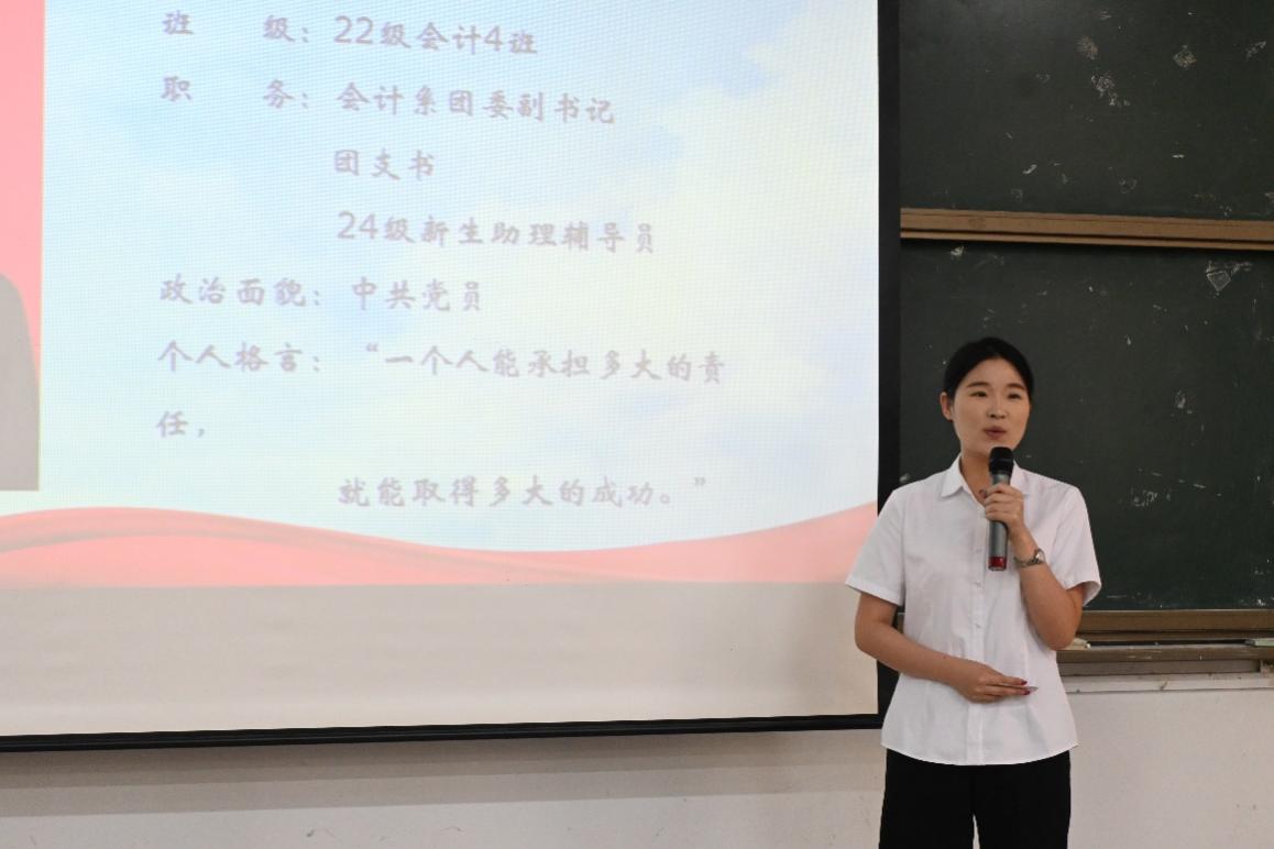 本次活动对读书榜样、文体榜样、志愿实践榜样、学习榜样、竞赛榜样等23名优秀个人以及10个优秀宿舍、3个优秀班集体进行表彰。“优秀学生干部”乔成标分享了在思想进步、学业精进等方面的成长历程;“学习榜样”杨少钰展示了如何在竞赛与学业中努力实现平衡发展;“读书榜样”赵梓君分享了自身阅读规划与习惯养成;“优秀宿舍”代表曹紫喻分享了成员间互助进步与青春活力的点滴日常。“优秀班集体”代表22级审计1班分享了班级目标共筑和团队协作管理经验。他们的故事生动诠释了会计学子砥砺前行的精神风貌。