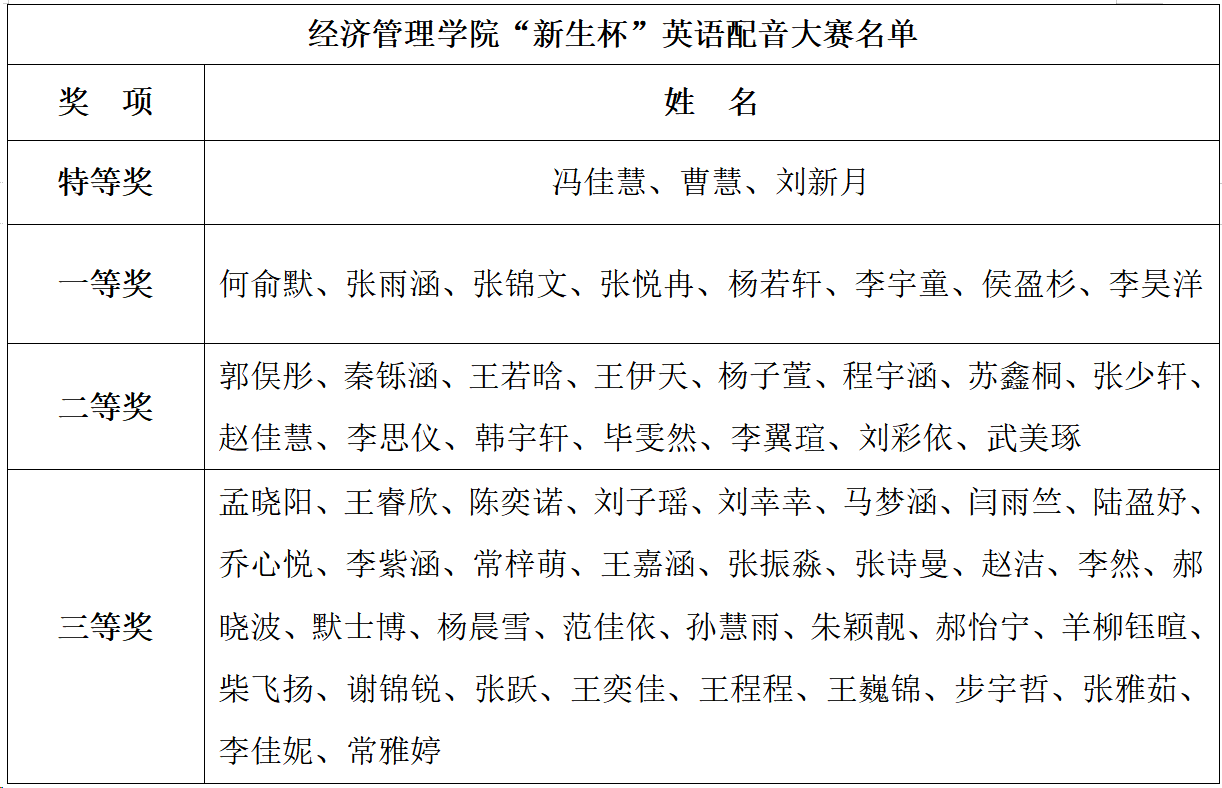 此次配音大赛营造了浓厚的英语学习氛围,为同学们搭建了一个展现自我、提升能力、创新实践的重要平台,对深化课程思政改革、创新人才培养模式、坚定学生理想信念、强化学生使命担当、丰富校园文化生活起到了积极作用。