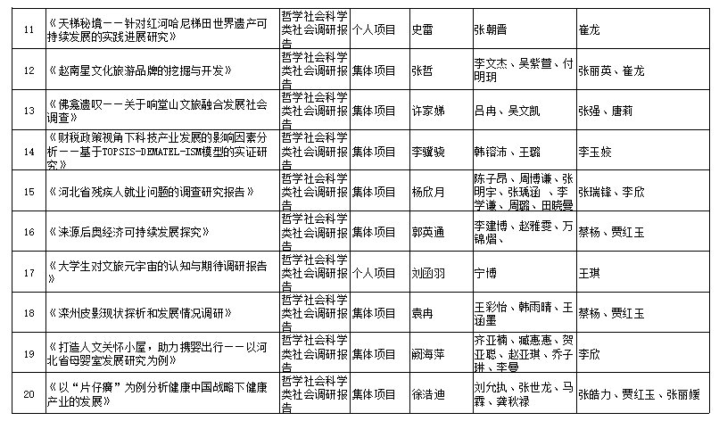 根据《关于组织开展2023年“挑战杯”河北省大学生课外学术科技作品竞赛的通知》等相关文件要求,经团队申报、单位推荐、专家评审等环节,最终评选出参加省赛项目20个,现将名单公示如下。