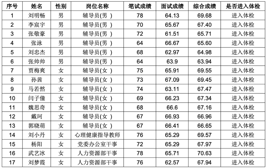 2024年7月28日,开云kaiyun登录入口2024年公开招聘工作人员的面试已结束。按照笔试、面试成绩均在合格分数线以上人员的总成绩确定体检名单,现将名单予以公布: