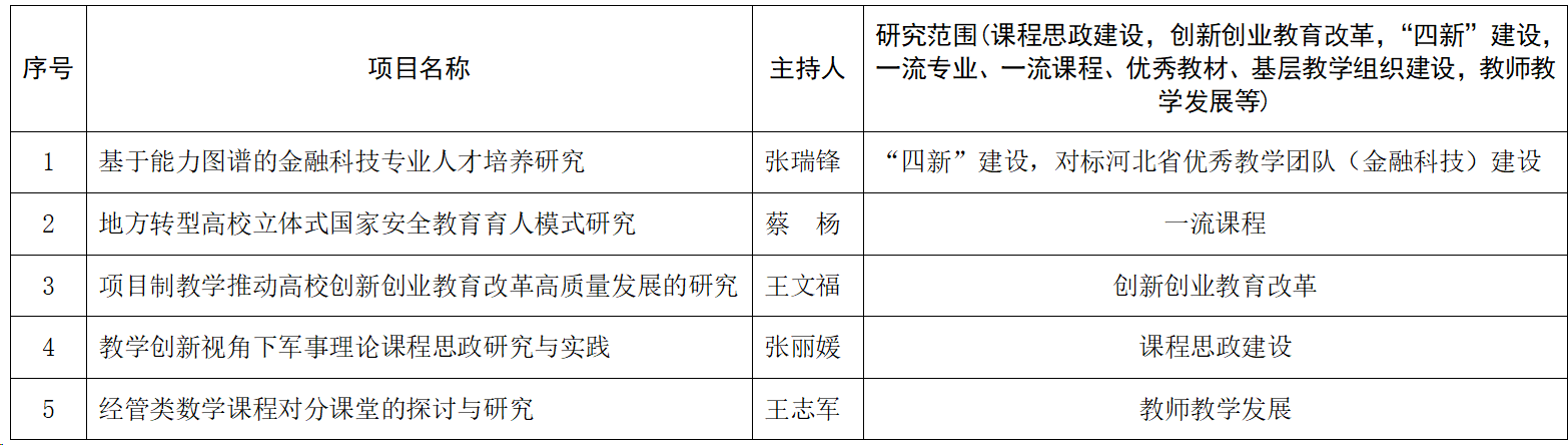 根据《河北省教育厅关于开展2025年河北省高等教育教学改革研究与实践项目申报工作的通知》(冀教高函[2024]52号)要求,开云官网组织了项目申报工作。经个人申报、学院审核推荐,本次申报项目共8项。经专家评审,最终推荐5项申报河北省高等教育教学改革研究与实践项目,现对评审结果予以公示。