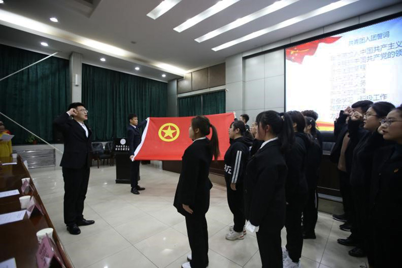 2019年学院共青团聚焦主责主业,突出思想引领,深化团学组织改革,全面从严治团,各项工作有序开展并取得实效。总结表彰会上,青年大学习优秀学员代表、部分社团负责人汇报了今年取得的成果,38位新团员在团旗下庄严宣誓,院系领导为优秀学员、优秀团支部和青马班辅导员分别颁发了结业证书和荣誉证书。