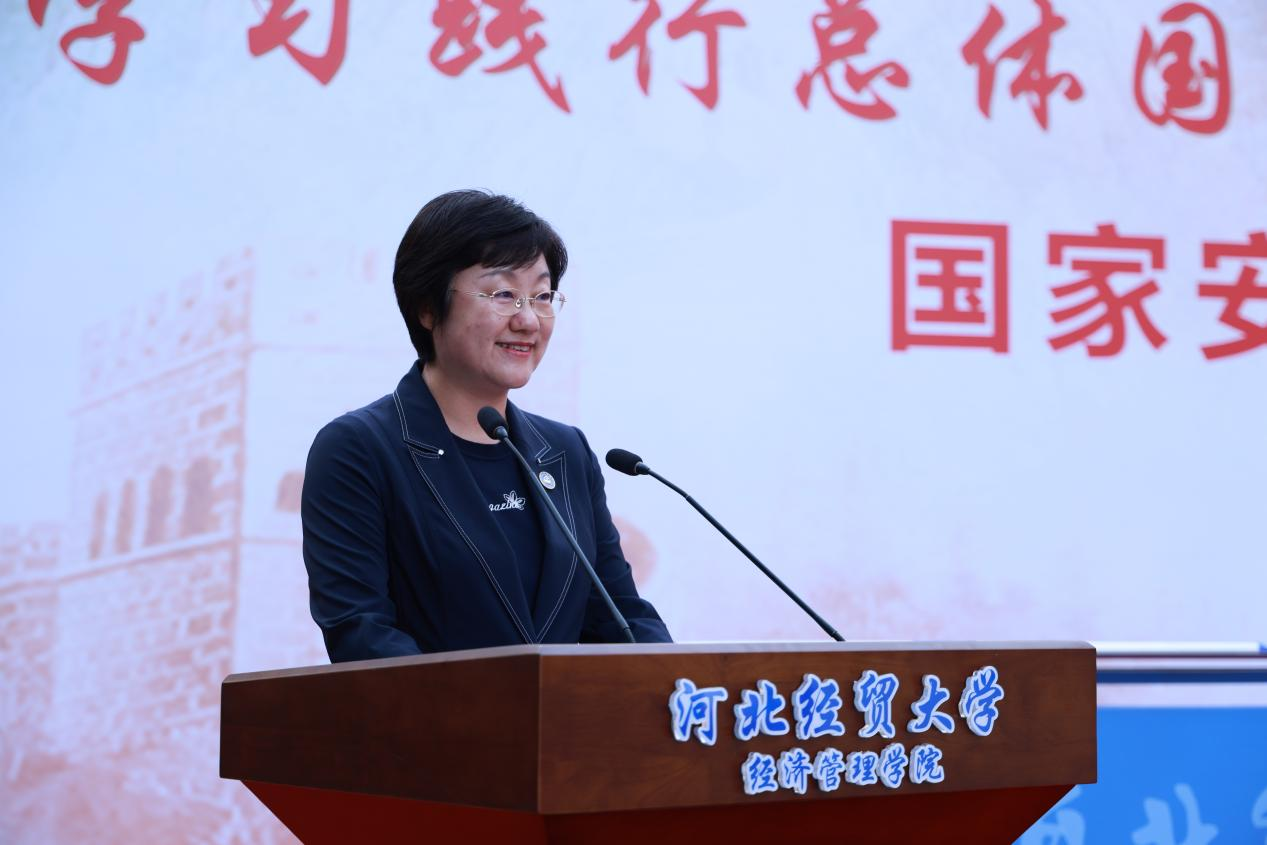 揭牌仪式上,李晓华首先对应邀嘉宾的到来表示热烈欢迎,向为展厅建设付出辛勤努力的师生员工表示感谢,她指出,展厅的建成是学校贯彻落实总体国家安全观的重要举措,标志着我校国家安全教育工作进入了阵地化、体系化、可视化的新阶段。她强调,未来学校将重点推进课程融合、社会服务和理论研究三项工作,真正将展厅建设成为政策宣讲的课堂、实践研究的平台和服务社会的窗口,为培养担当民族复兴大任的时代新人贡献力量。
