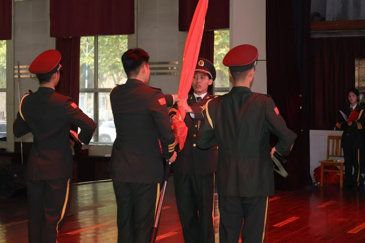 10月28日下午,学院在礼堂隆重举行国旗护卫队换届仪式暨比武大会。学生工作部负责人和各系副书记出席活动,院国旗护卫队新老队员参加。