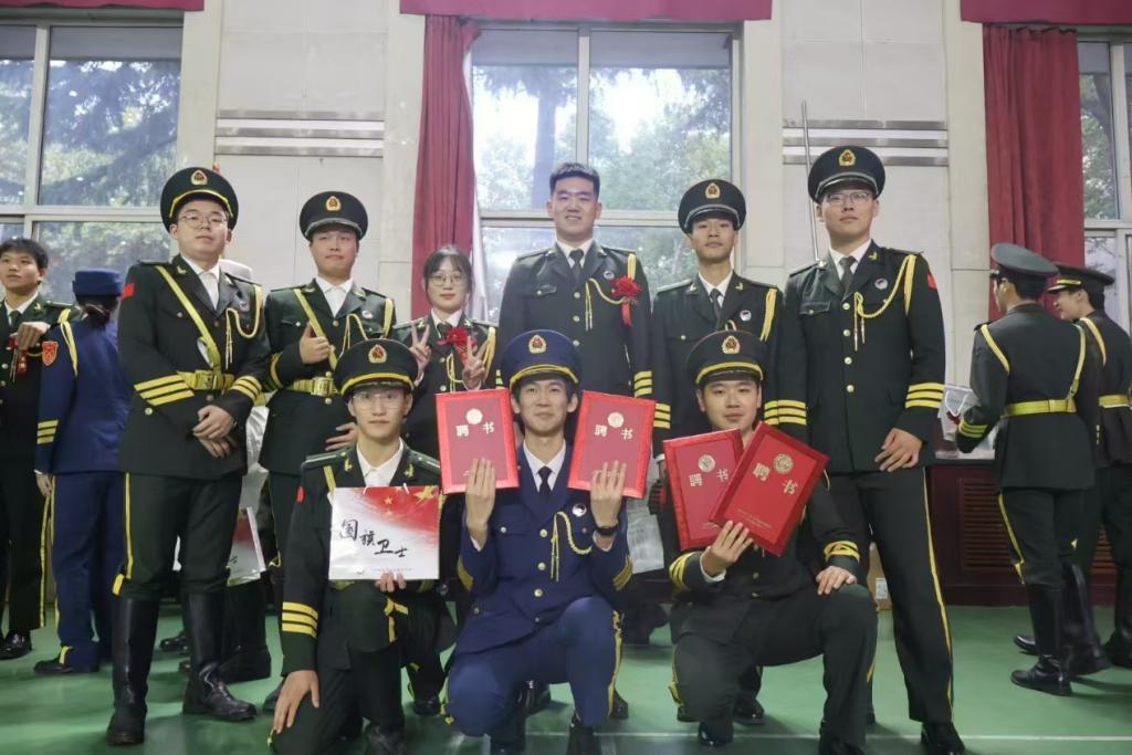 “换届换的是队员,换不走的是肩负使命的责任,是守护国旗的热血青春。”学生工作部副部长杨斌勉励新队员们要把国旗护卫队的优良作风传承好,维护好,胸怀理想,刻苦训练,以更加昂扬的精神风貌,成就更好的自己,捍卫国旗的尊严。
